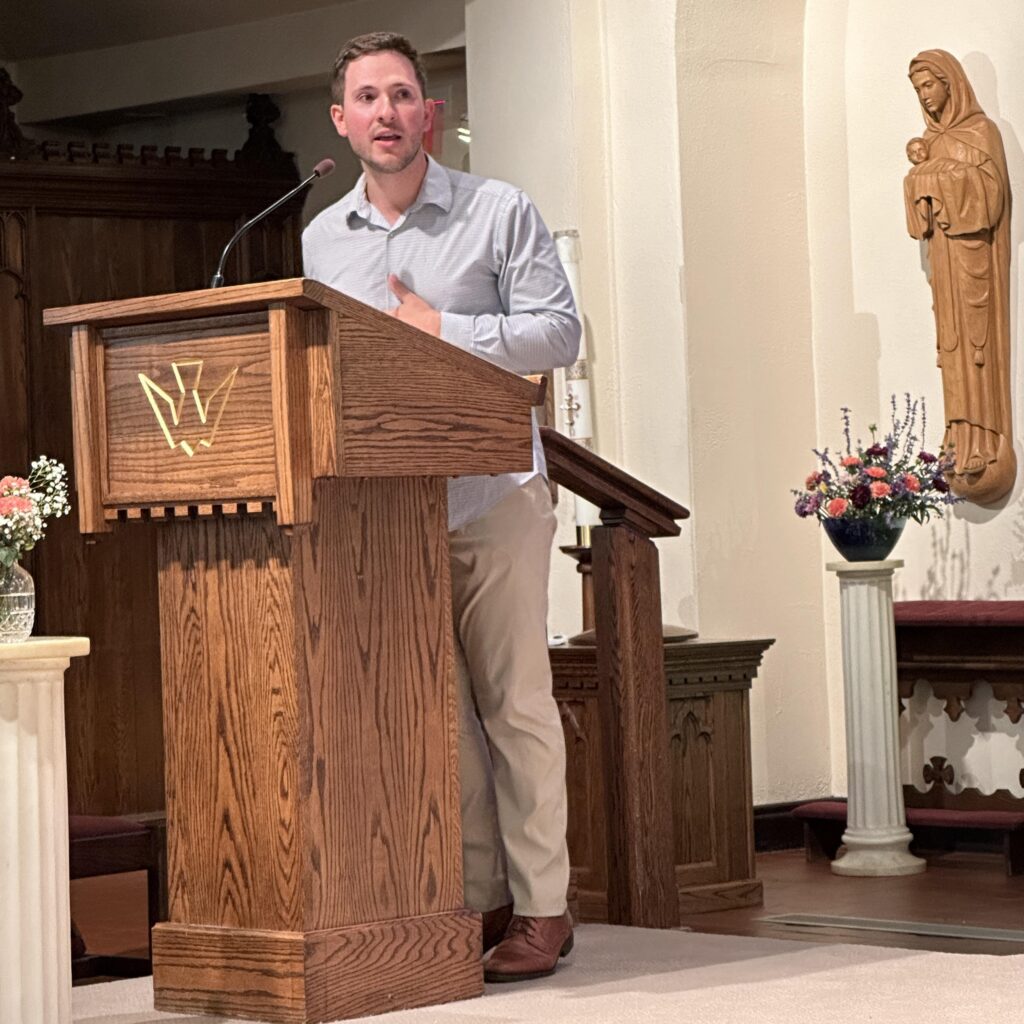 Luke Delvecchio got his start in Youth Ministry as a member of the St. Paul Youth Group while in high school and has been working in youth ministry for more than 20 years in Wellesley. A graduate of Wellesley High School and Babson College, Luke works in data analysis and lives in Wellesley with his wife, Zemira, and their six children. Luke is an integral member of the Sunday 5pm Youth Music Group, and one of the things he enjoys most about his role in Youth Ministry is walking with young people in their faith journey. (He means that literally – World Youth Day Lisbon in 2023 was his 8th World Youth Day experience!)