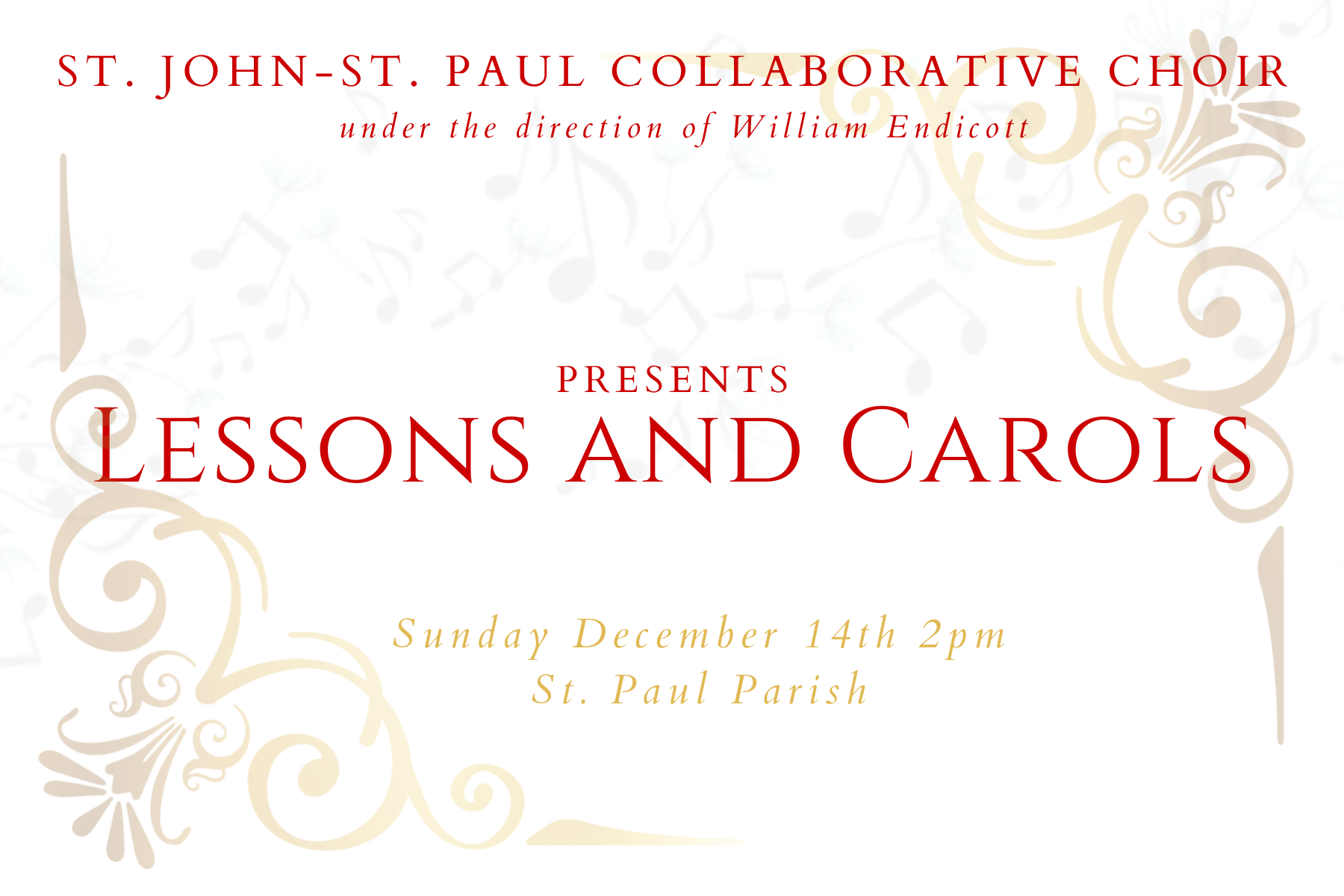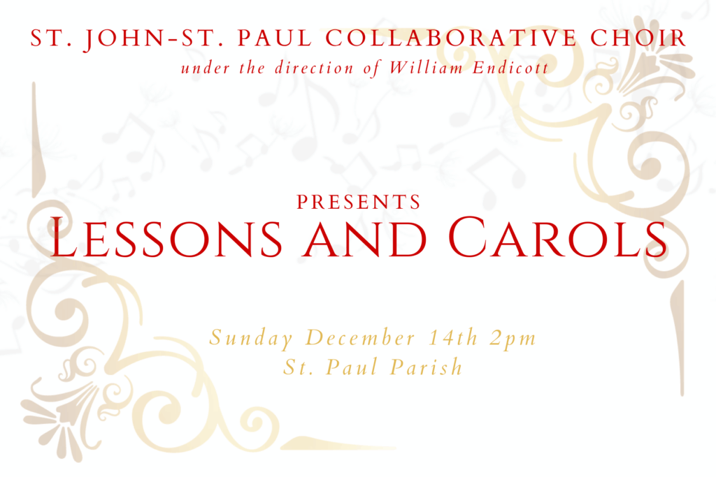 Don’t miss this festive tradition presented by the Parish Choirs of St. Paul & St. John, led by William Endicott, Collaborative Director of Music.