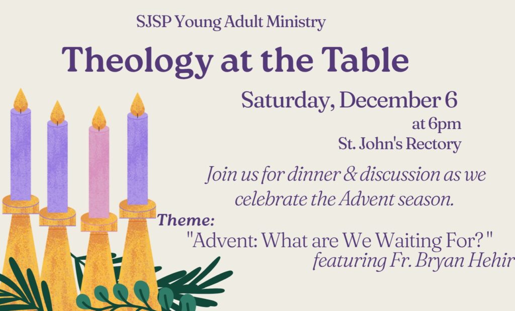 Young Adult Ministry: Advent Theology at the Table on Saturday, December 6 at St. John