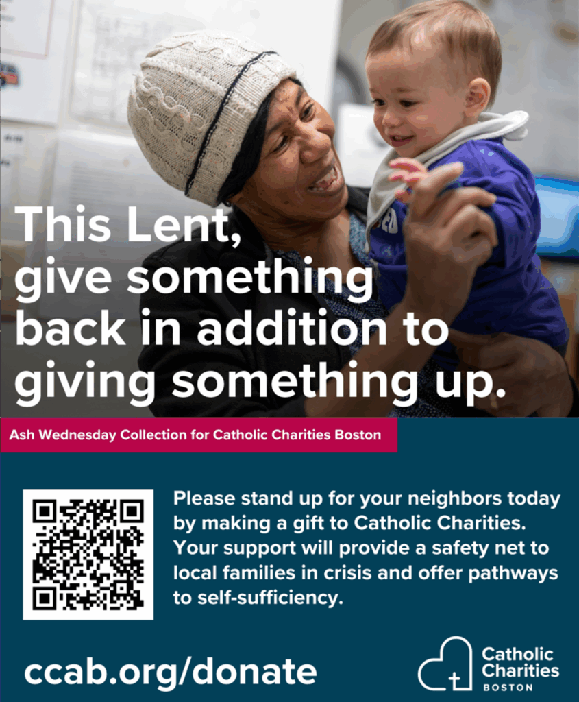 Every year on Ash Wednesday, the collection at all Masses in the Archdiocese of Boston is taken up for Catholic Charities Boston.