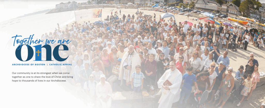 Pledge and credit card donations can be made at Mass this weekend by completing one of the Catholic Appeal envelopes found in the pews and dropping it in the regular offertory collection or in one of the baskets in the gathering area. Donations can also be made online at any time by visiting bostoncatholicappeal.org.
